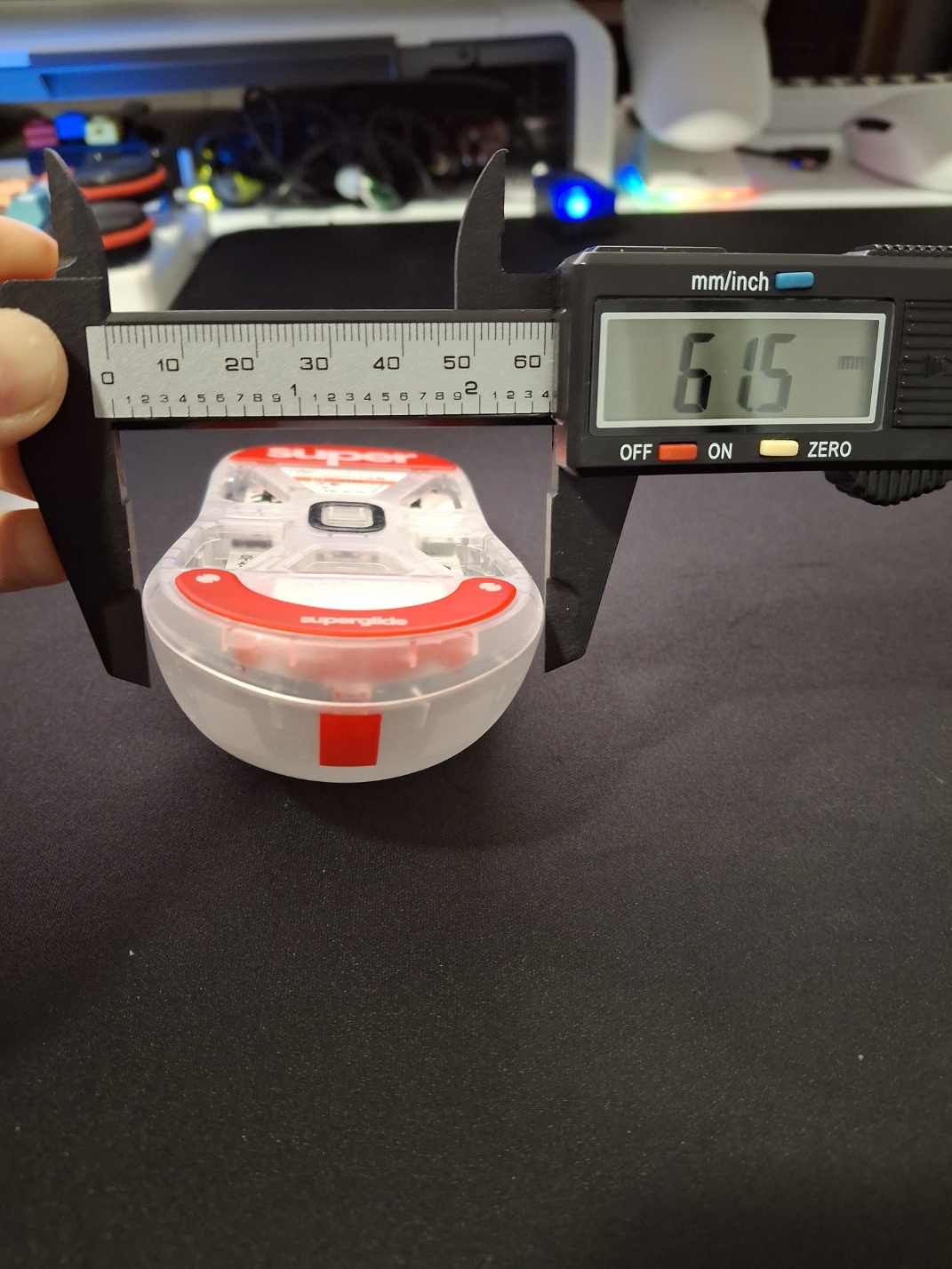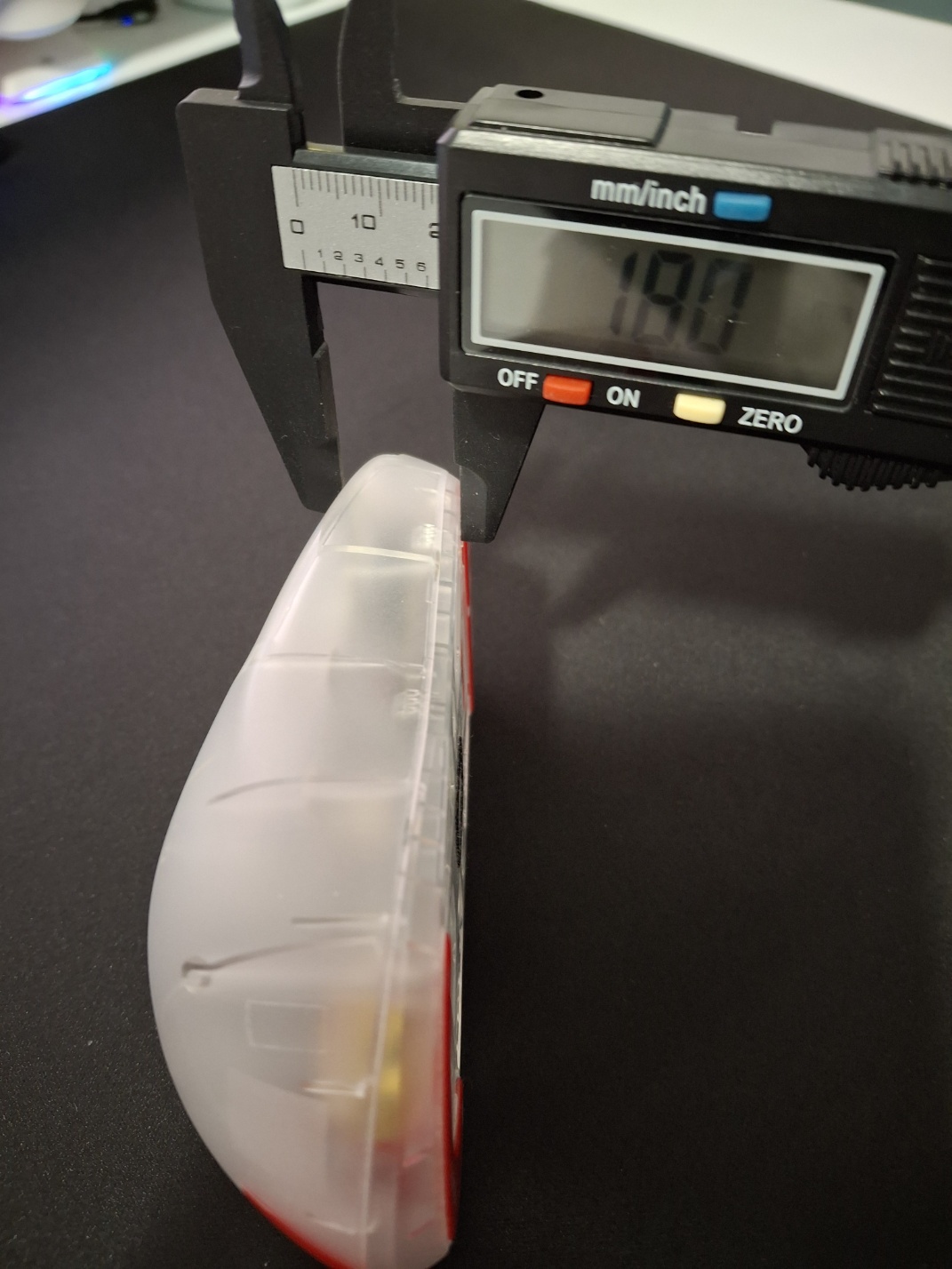 반투명 화이트 색상이라 매력적인 디자인을 가지고 있습니다. Pulsar X2H Super Clear edition 미니 무선 게이밍 마우스는 대칭형 마우스 입니다. 제가 구매한 사이즈는 미니 사이즈라 키보드 배열 F9 손 사이즈 이하의 손을 가지고 계신 분들이라면 정말 추천하고 싶은 마우스입니다. 미디움 사이즈도 있습니다. 하단에 DPI 버튼과 전원 ON/OFF 버튼이 위치에 있습니다